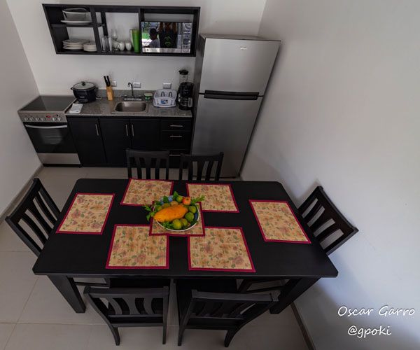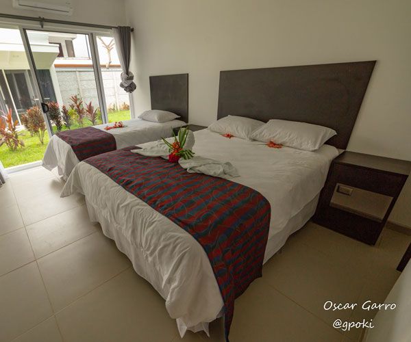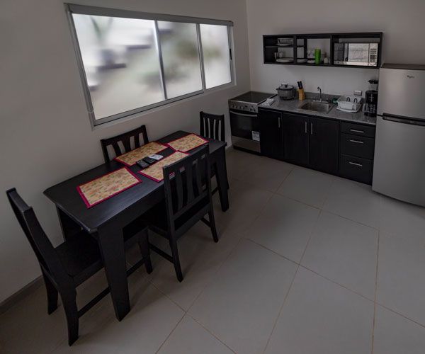 Villa Playa Ventanas has spacious and comfortable studio-like space for 2 people. It has a King bed, a well-lit bathroom and drapes to offer our guests more privacy. It has a flat screen, a King bed, a coffee maker, air conditioning, wireless internet and hot water in both the shower and the sink. They also have a breakfast bar, a fridge and a balcony with garden view.